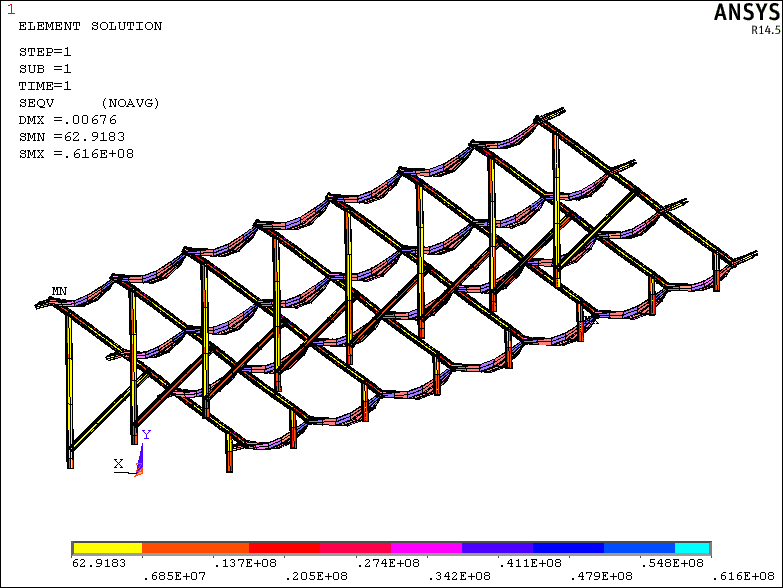 由剪力图中可以看出斜梁中分布了6个峰值,分别为: