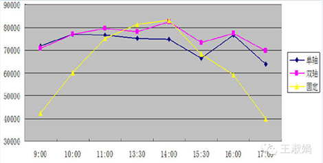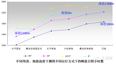 2010年的时候,我开始关注不同运行方式的比较,从某个支架厂家那里获得了一些实测的数据,完成下图。