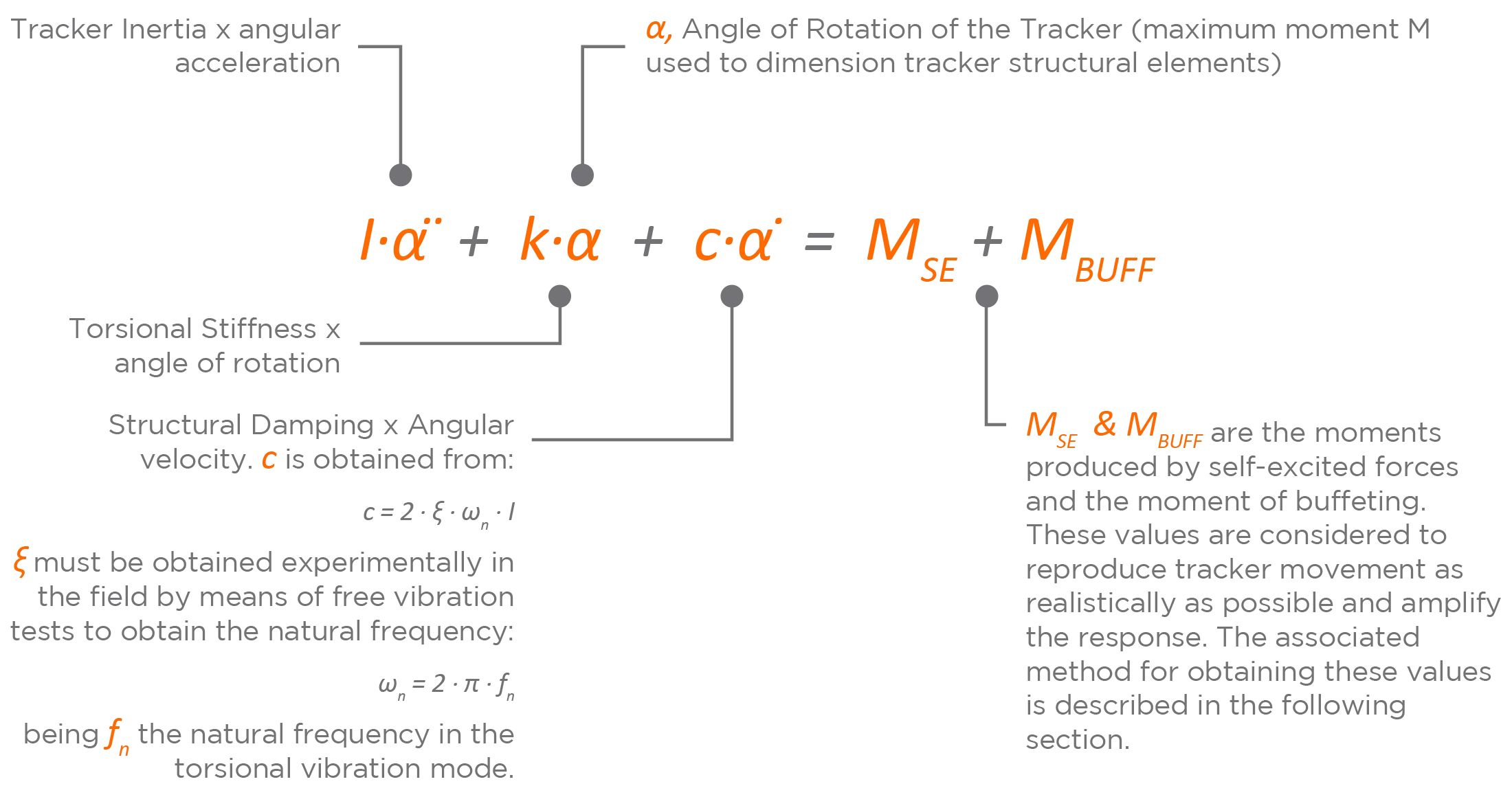 - BAM使用数值模型、来自多排阵列的风速和压力测量、空气动力学导数和风波动来预测跟踪器的扭转偏转。该数值模型还可用于提取作用在跟踪器上的自激力、惯性力和抖振风力进行设计。