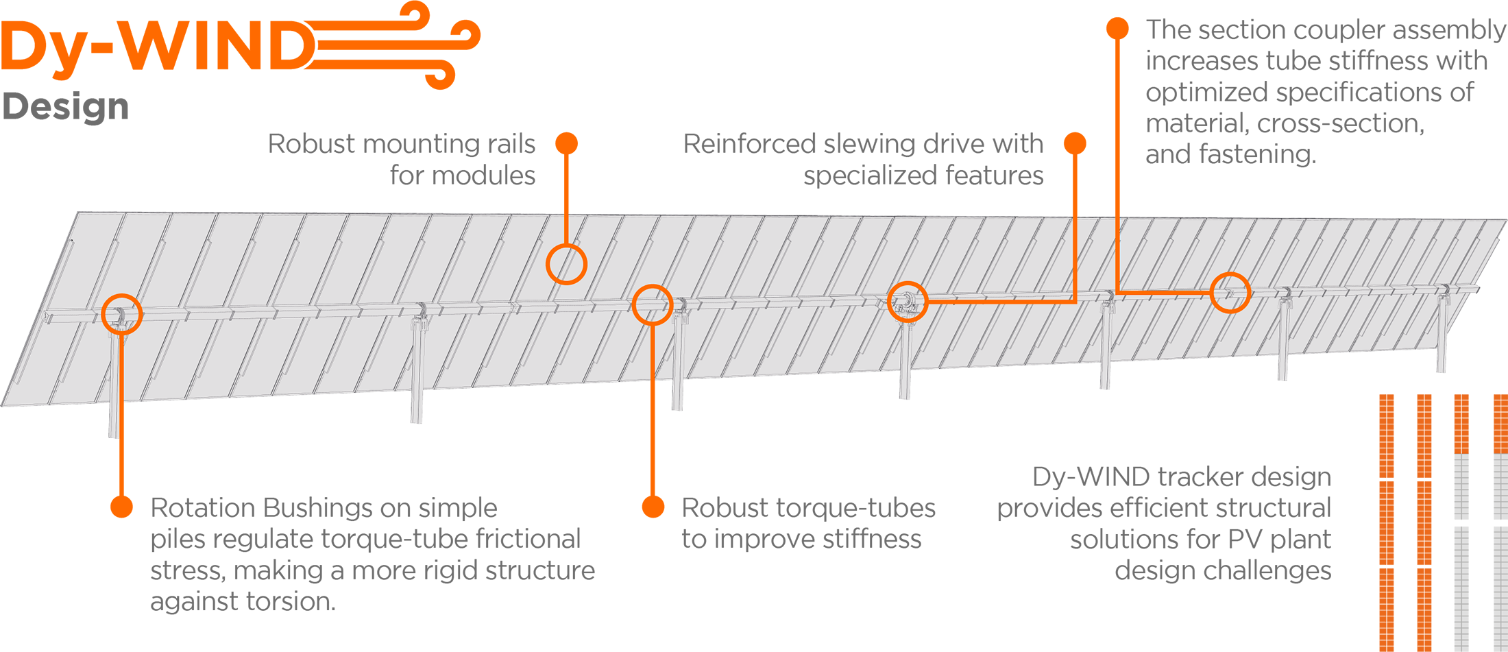 - Dy-WIND 是一种创新且具有挑战性的分析方法,应用于太阳能跟踪器风设计,基于准确的风荷载分析。