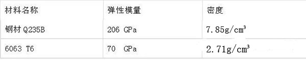 支架一般采用Q235B钢材与铝合金挤压型材6063 T6,两者设计强度对比见下表: