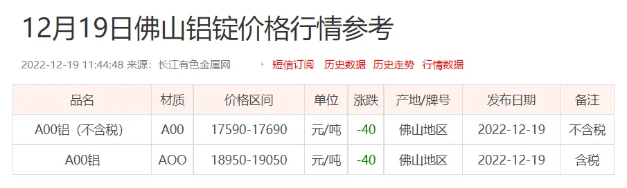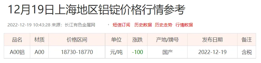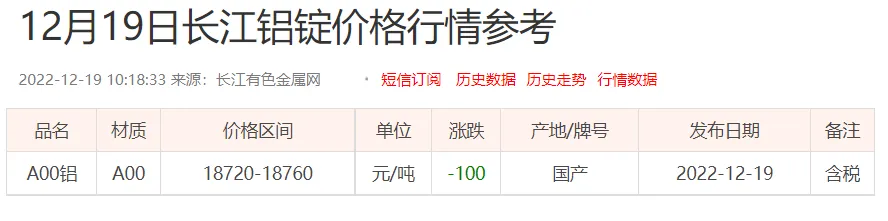 铝锭价格: