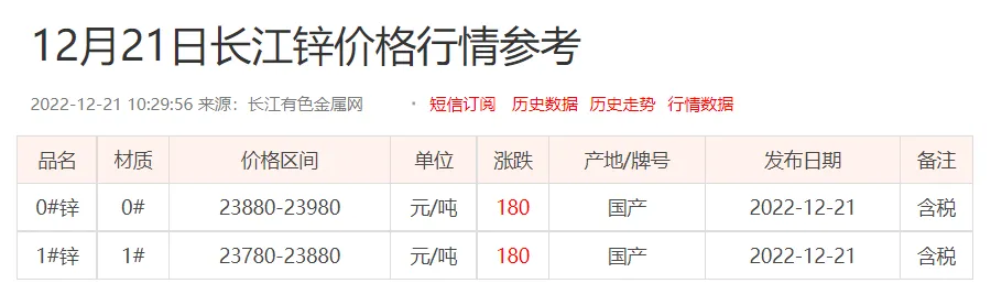 锌锭价格: