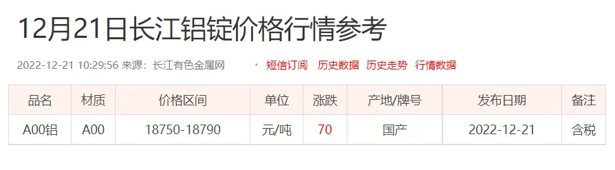 铝锭价格: