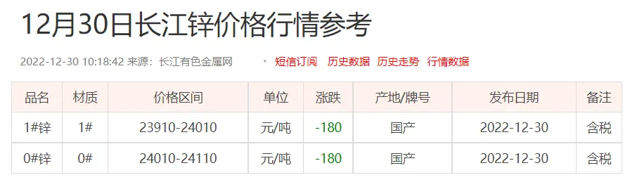 锌锭价格:
