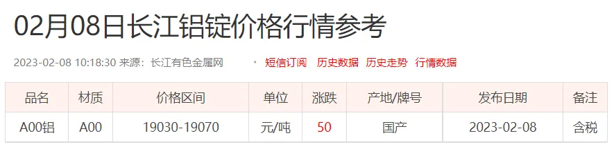 铝锭价格: