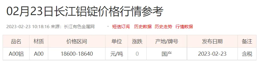 铝锭价格:
