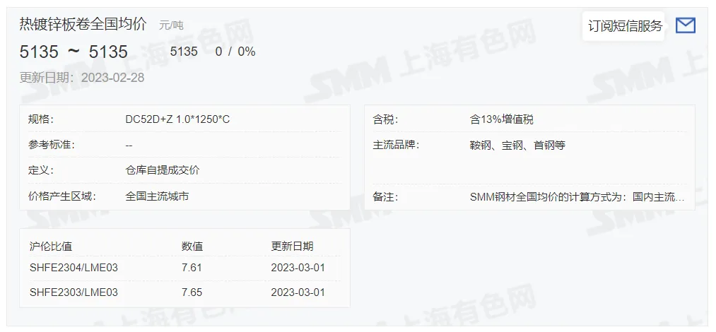 锌锭价格: