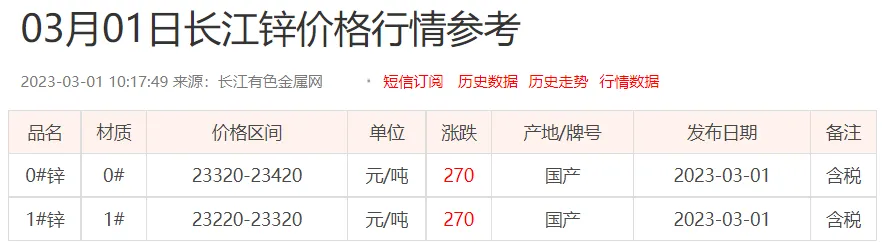 锌锭价格:
