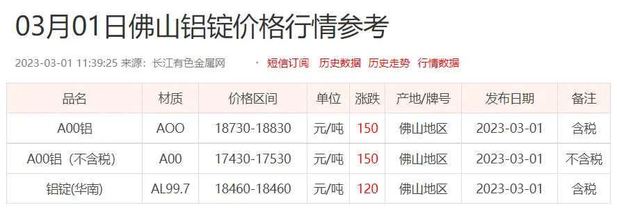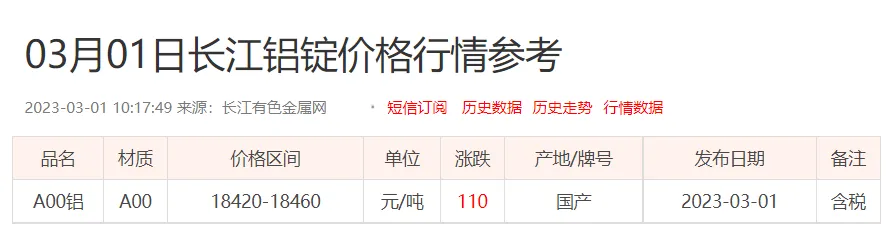 铝锭价格: