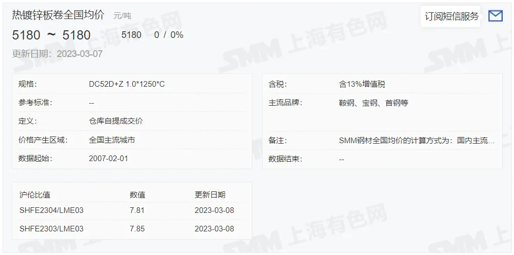 锌锭价格: