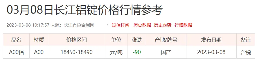 铝锭价格: