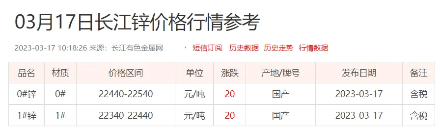 锌锭价格: