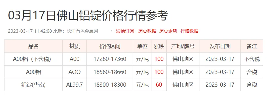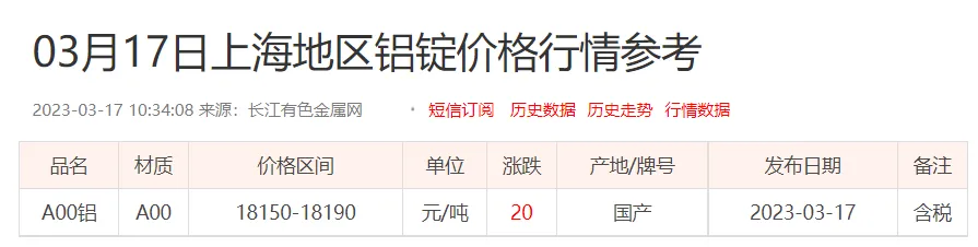 铝锭价格: