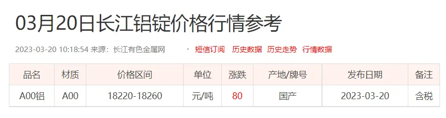 铝锭价格: