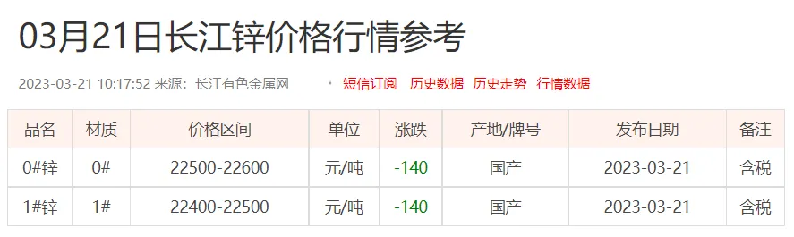 锌锭价格: