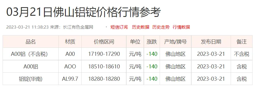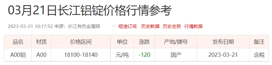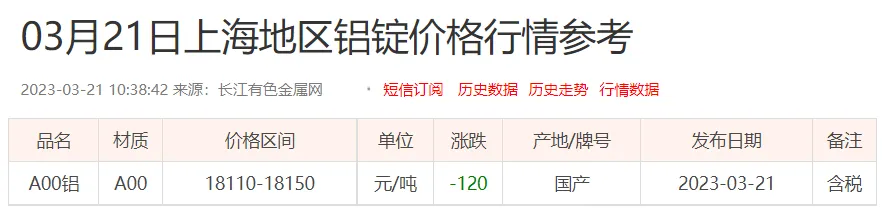 铝锭价格: