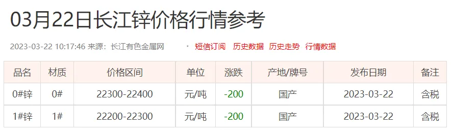 锌锭价格: