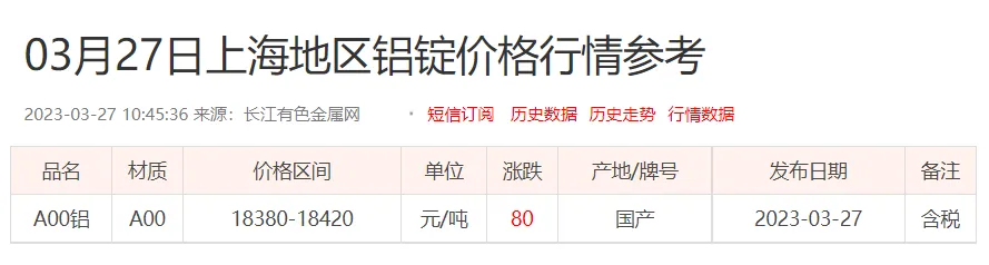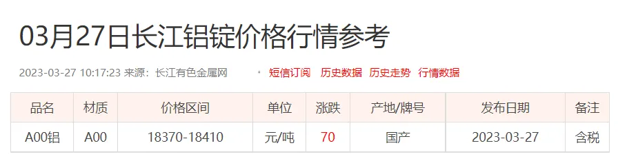 铝锭价格: