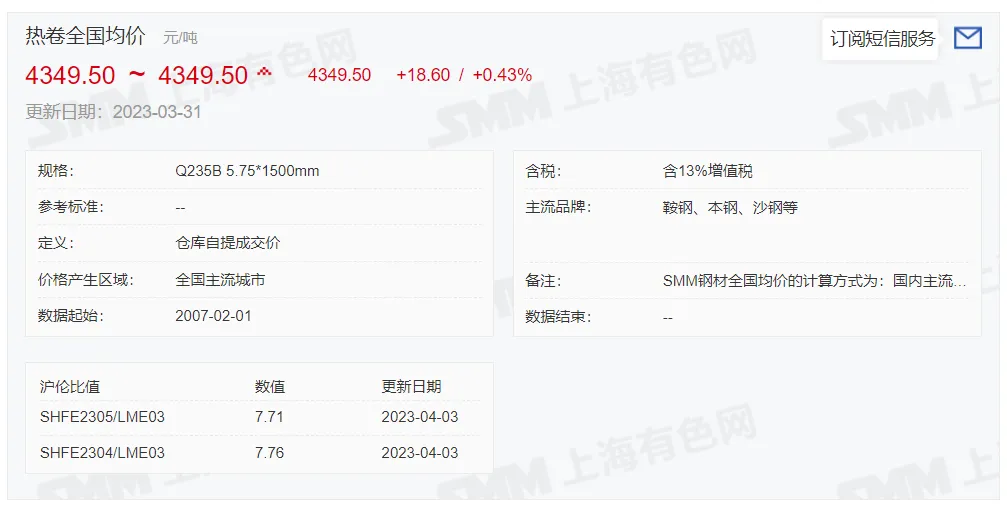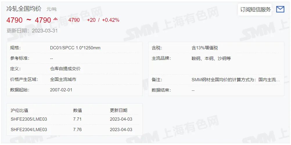 2023年4月3日,上午10:10, 唐山355系列带钢市场价格 4180元/吨,较昨降10元/吨;本月结算周期,截止到今天均价:4193元/吨,截止到月底:4184元/吨。
