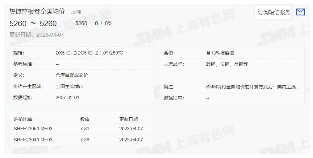锌锭价格: