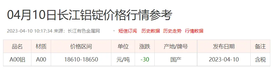 铝锭价格: