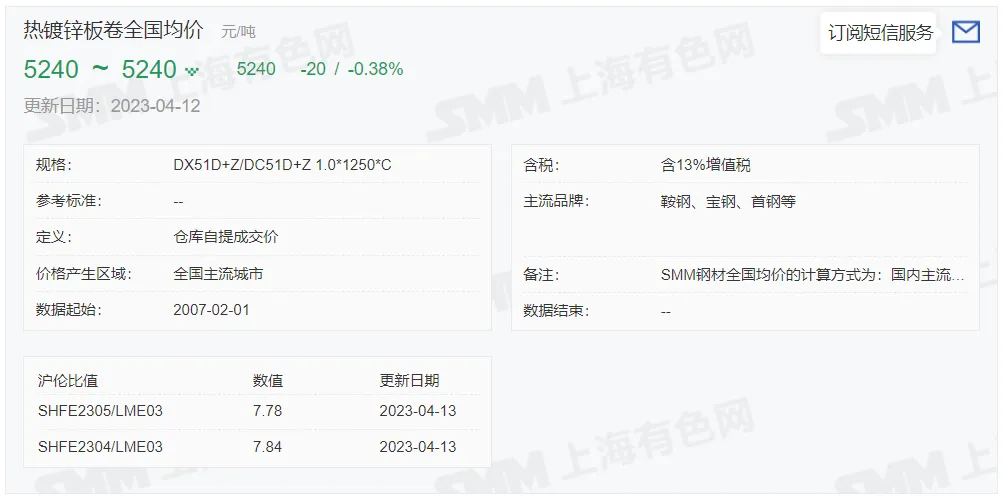 锌锭价格: