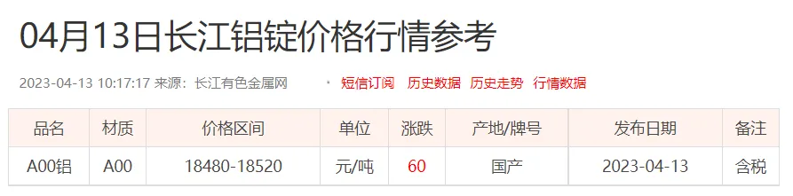 铝锭价格: