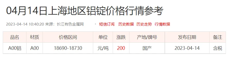 铝锭价格: