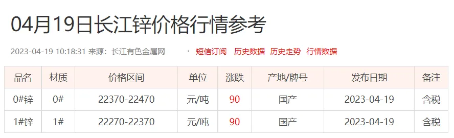 锌锭价格: