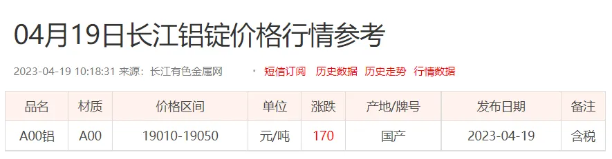 铝锭价格: