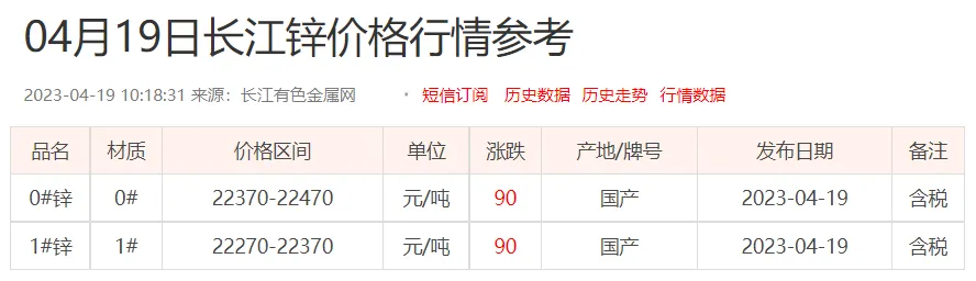 锌锭价格: