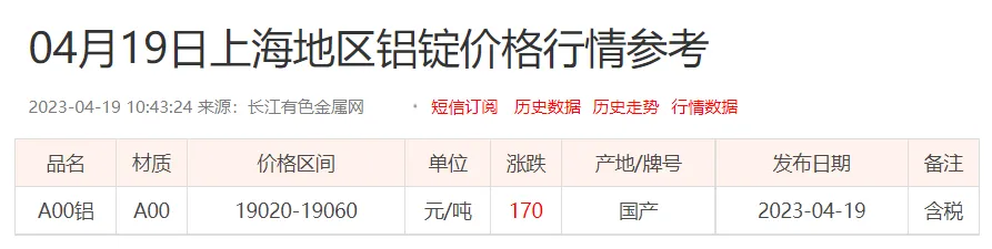 铝锭价格: