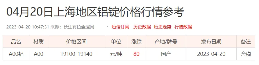 铝锭价格: