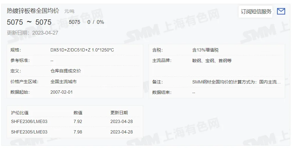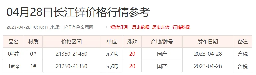 锌锭价格: