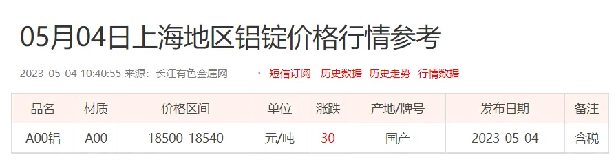 铝锭价格: