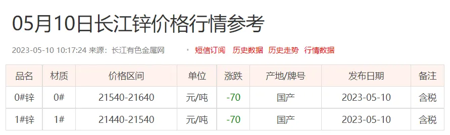 锌锭价格:
