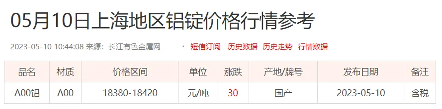 铝锭价格:
