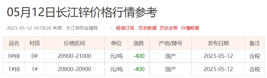 数据来源:我的钢铁、上海有色网、长江锌业网、长江铝业网