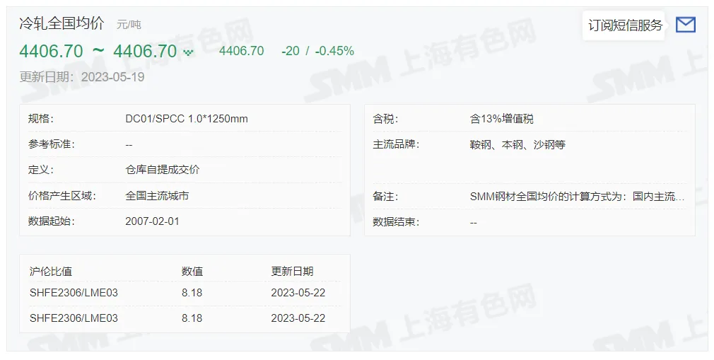 2023年5月22日,上午10:10, 唐山355系列带钢市场价格 3650元/吨,较昨降10元/吨;本月结算周期,截止到今天均价:3685元/吨,截止到月底:3682元/吨。