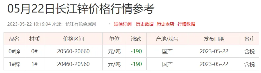锌锭价格: