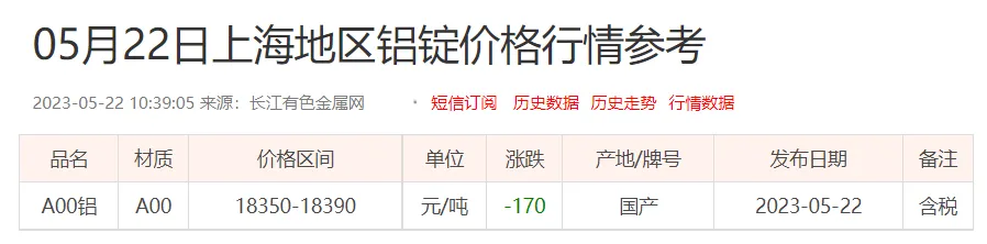 铝锭价格: