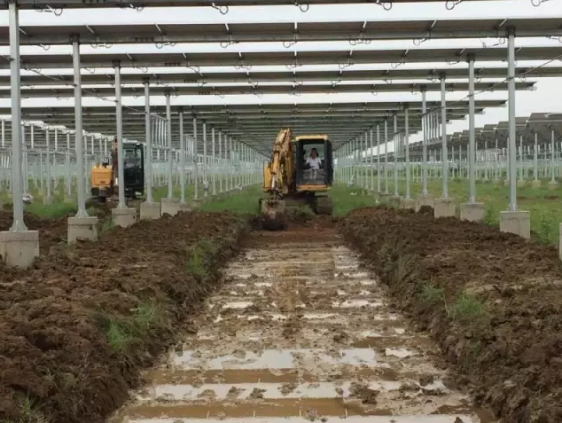 该项目中信博跟踪系统采用桁架加拉筋的结构,具有立柱数量少、安装方便快捷、现场不需要大型机械设备的特点,系统整体形成一个网状的稳定结构,组件连接具有整体性,绝不会出现组件脱落现象,实现农业与光伏完美结合。
