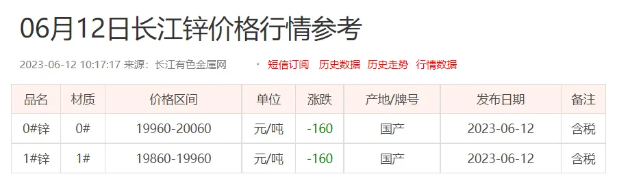 锌锭价格: