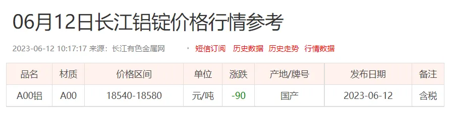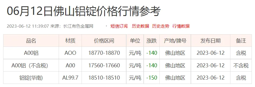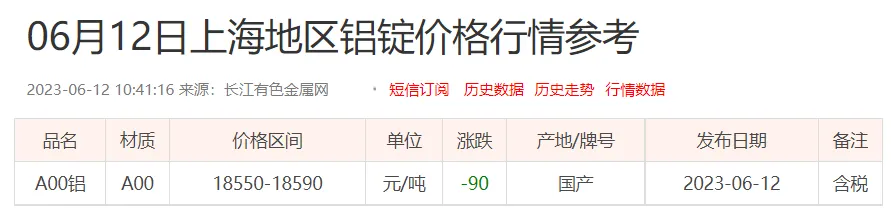 铝锭价格: