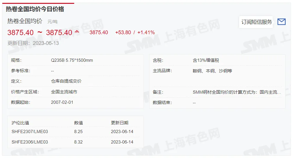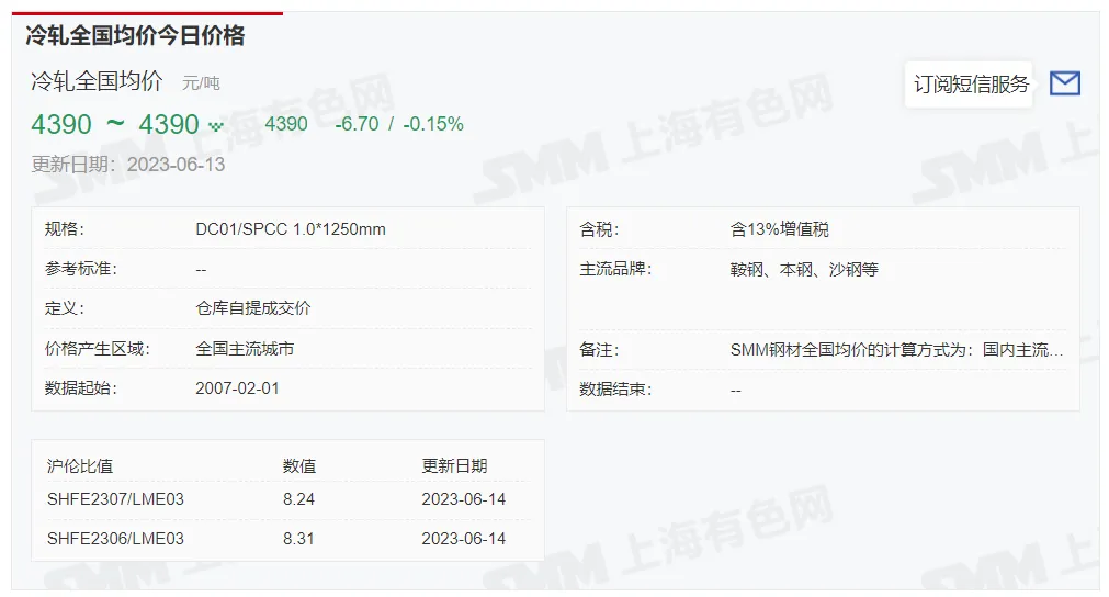 2023年6月14日,上午10:10, 唐山355系列带钢市场价格 3790元/吨,较昨稳;本月结算周期,截止到今天均价:3681元/吨,截止到月底:3720元/吨。