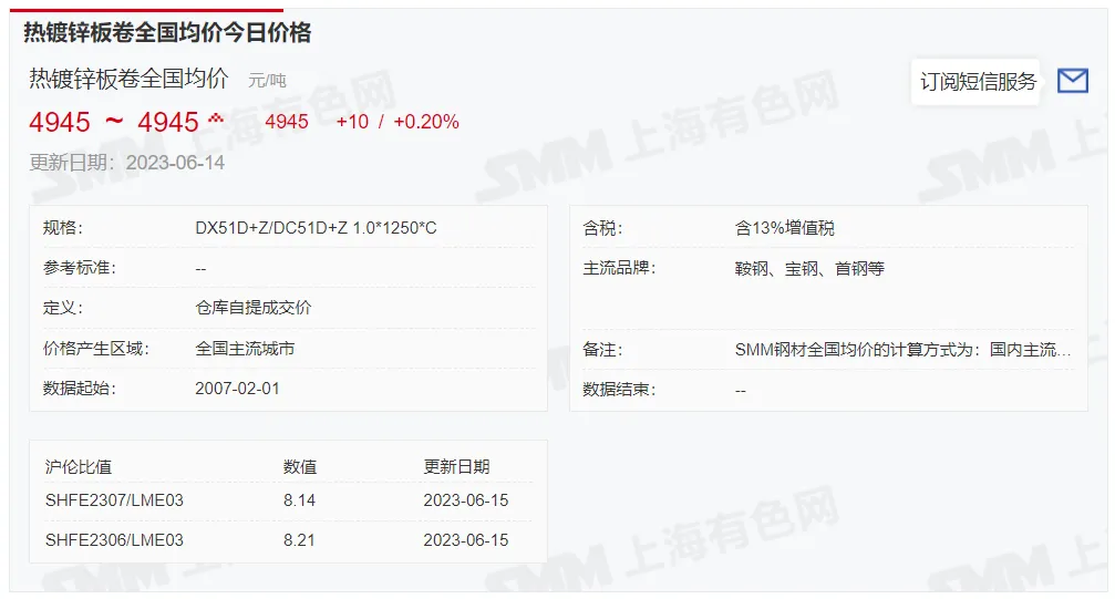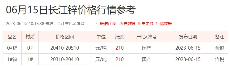 锌锭价格: