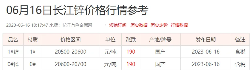 锌锭价格: