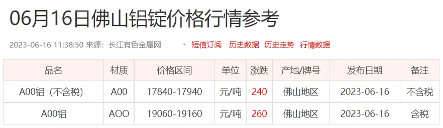 铝锭价格: