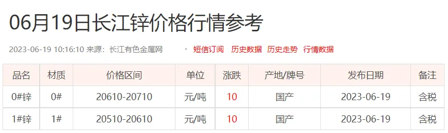 数据来源:我的钢铁、上海有色网、长江锌业网、长江铝业网